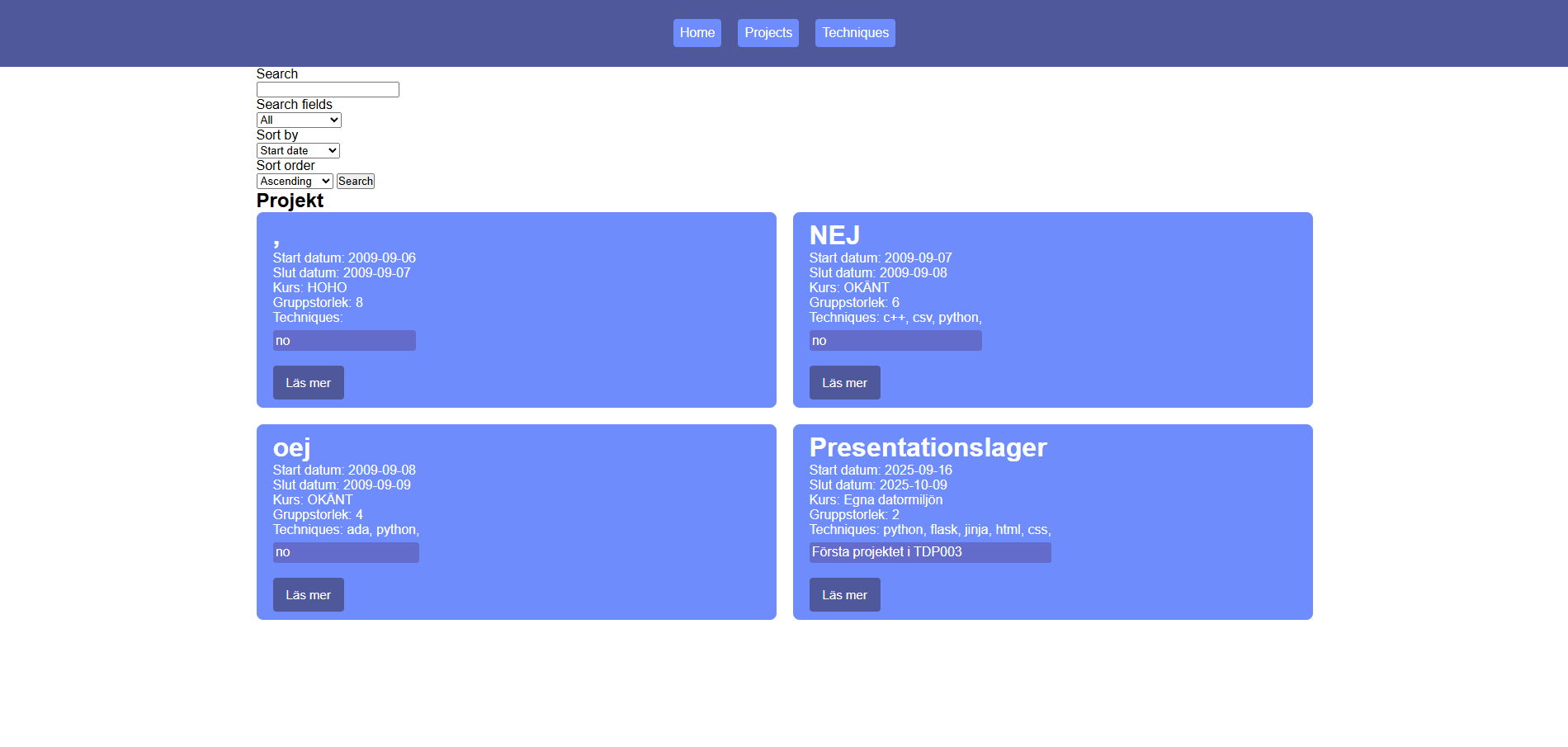 Första projektet i TDP003